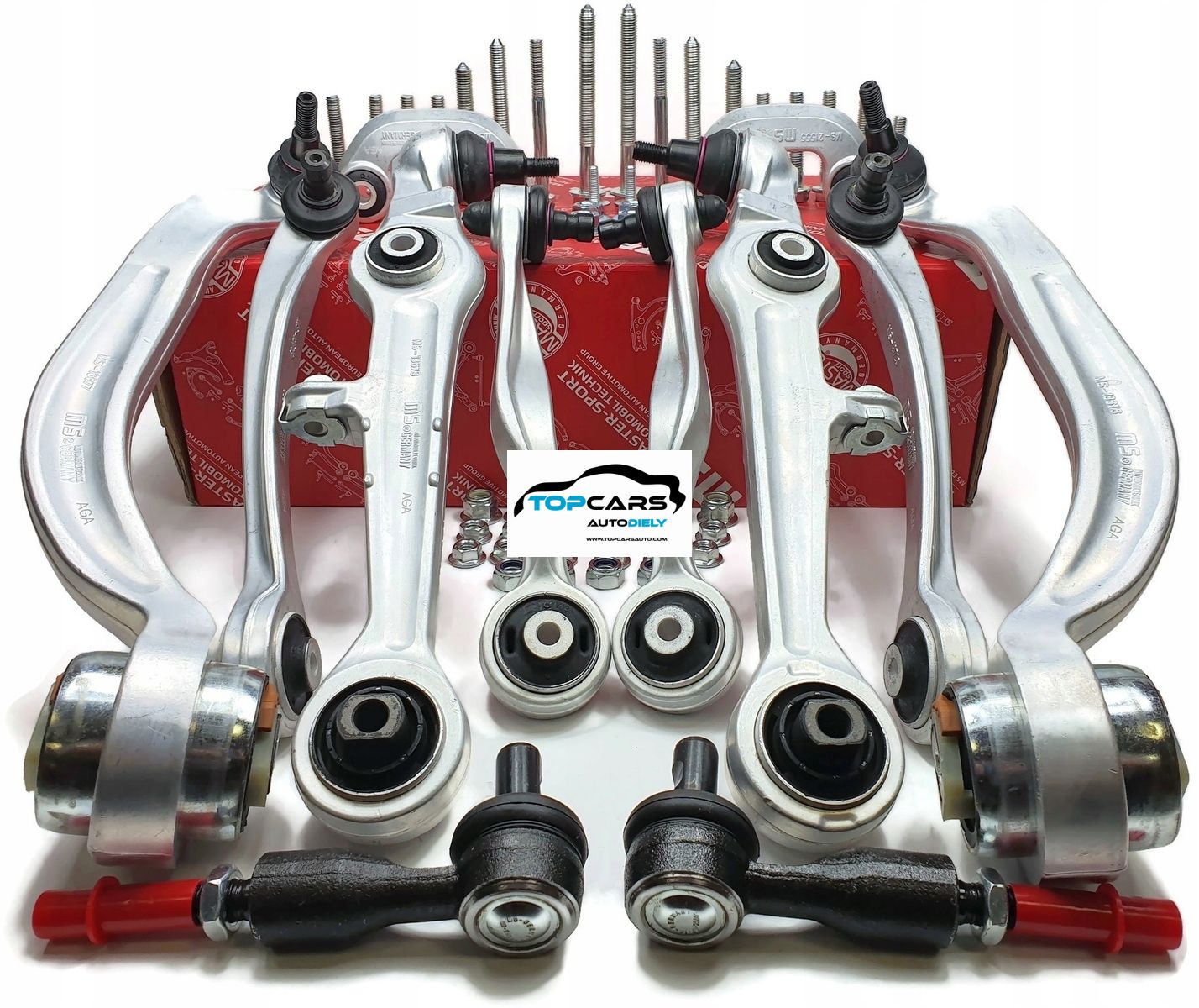 Kompletná sada ramien prednej nápravy AUTOMOBILTECHNIK MS GERMANY PREMIUM KLASSE s 20 % vyššou životnosťou čapov a silentblokov. Sada obsahuje všetky prvky na repas Vašej nápravy = ramená, stabilizačné tyče, čap riadenia. Priemer čapu 24,5 mm. Vhodná pred VW PASSAT B5, B5.5, ŠKODA SUPERB, AUDI A4 B5, AUDI A6 C5.